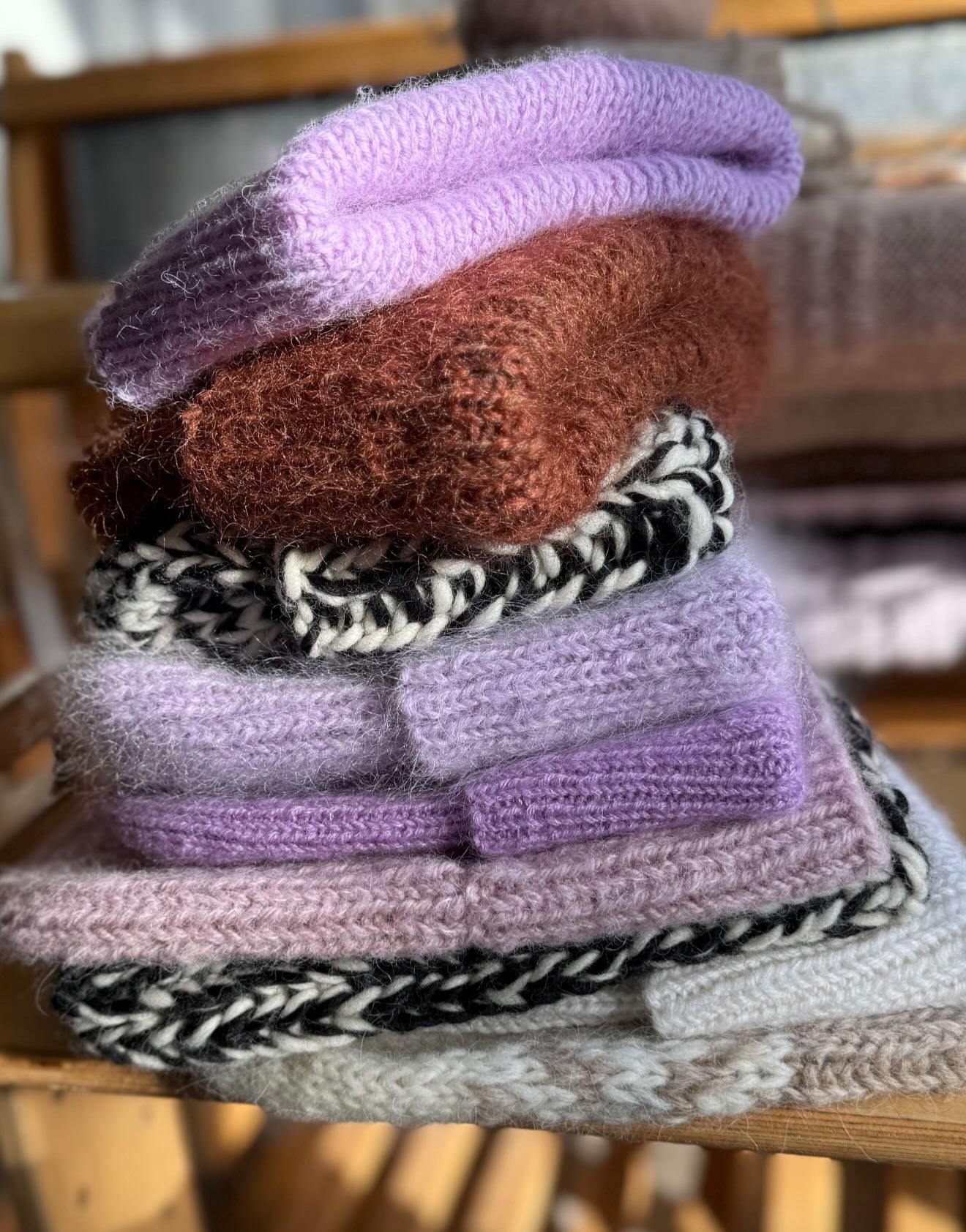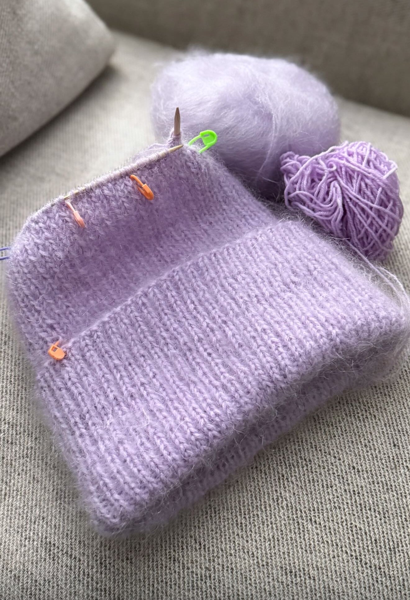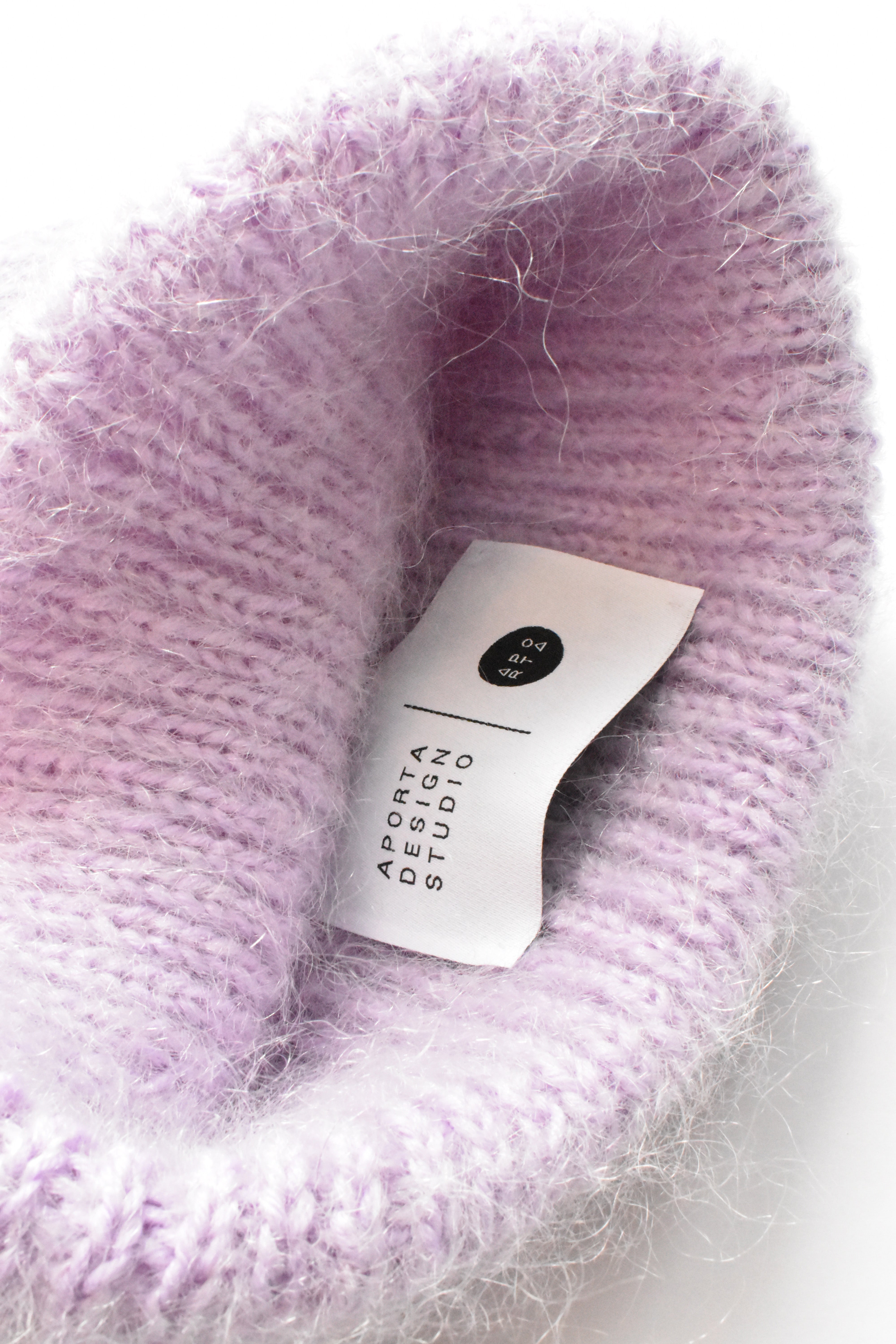 The ultimate fluffy, warm beanie. Hand knit from a combination of decadent soft mohair, cashmere and merino wool yarn in a rich lilac. An oversized statement piece sure to keep you warm all season long. This one-of-a-kind beanie is hand-knit in Missoula, Montana.