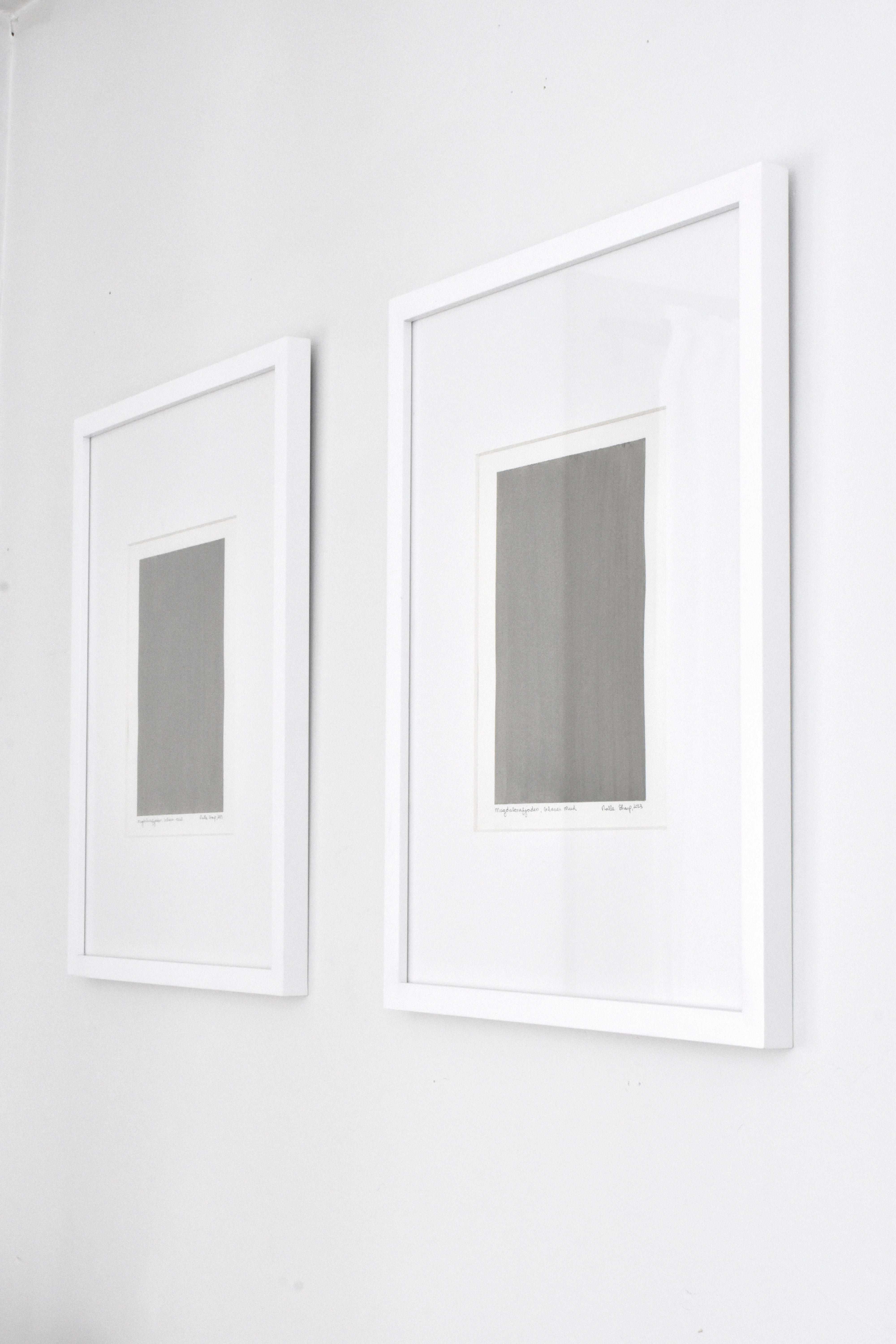 "Magdalenafjorden, Glacier Mud #1" 2023 by artist Noelle Sharp. Art measures 7'' x 9 1/2 '' and framed 15'' x 19''. Painted heavy wateroclor paper with glacier mud from the galcier Magdalenafjorden in Svalbard.