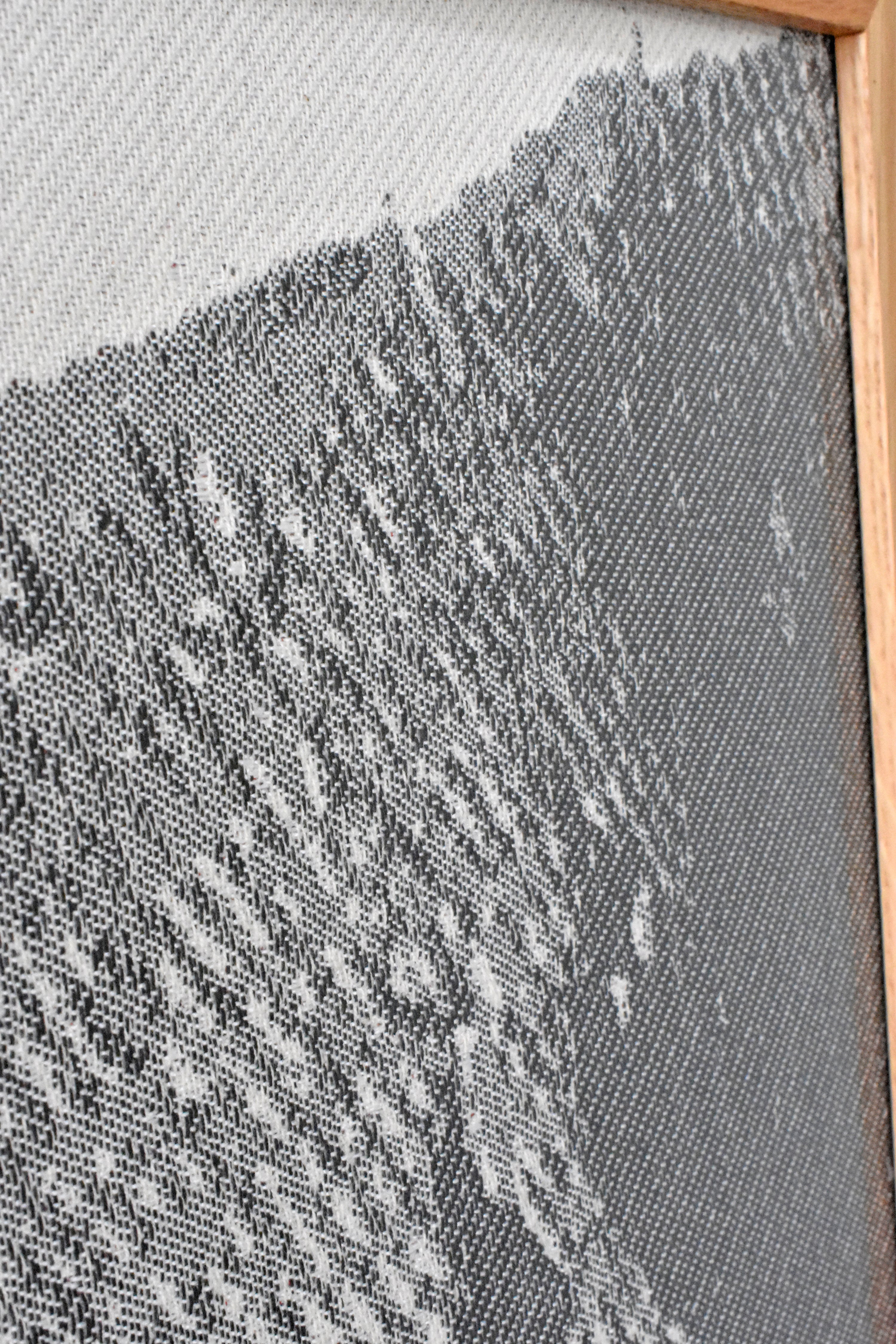The original weaving that this digital jacquard weaving represents was expertly crafted with the rare Navajo weaving technique known as the "Raised Outline", this piece showcases the artist's expertise while honoring cultural traditions. Sharp has spent the last 10 years volunteering, working and learning from the Navajo weavers of the Navajo Nation.