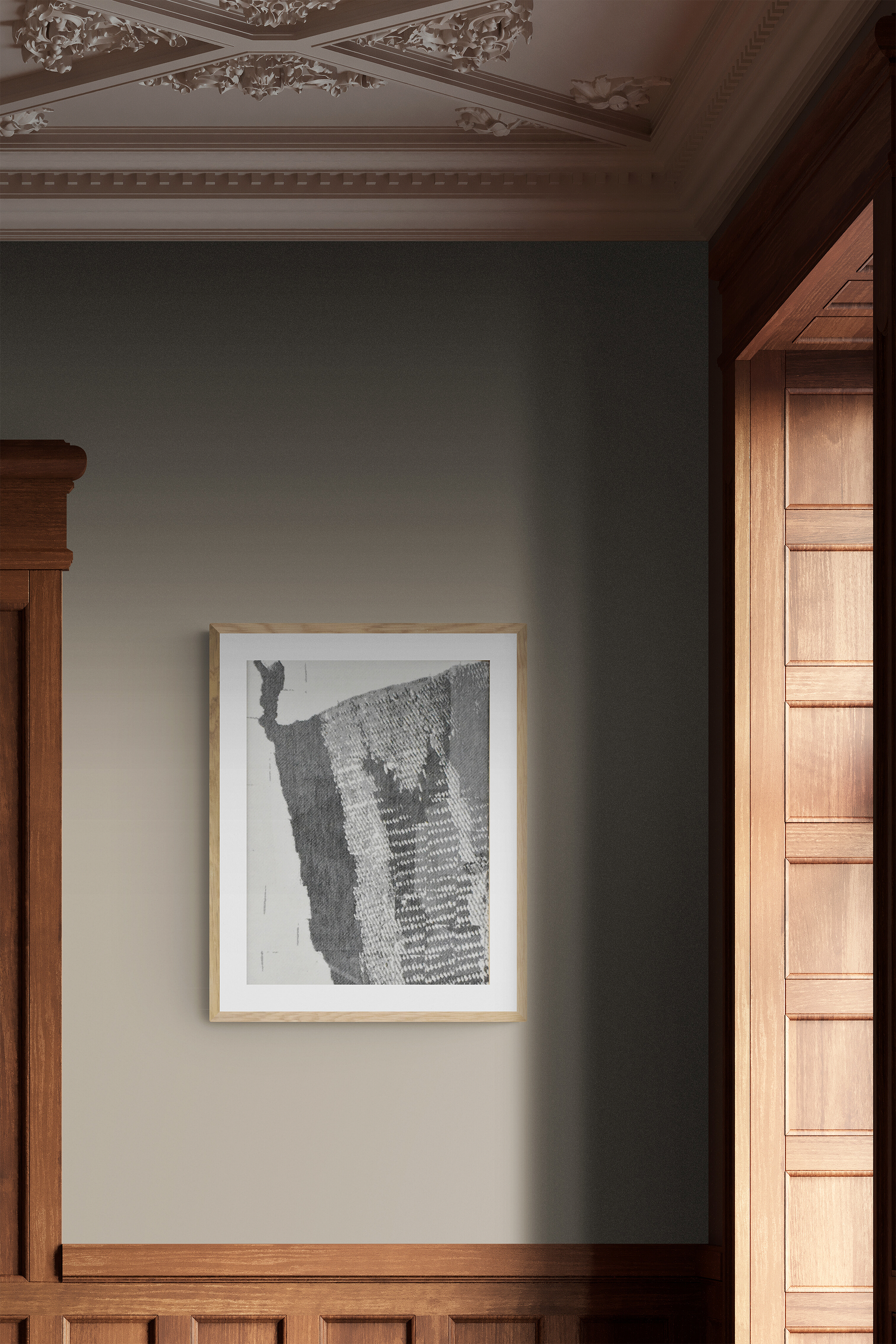 Framed in an oak wooden frame with tempered glass to protect the weaving without a white framing mat.