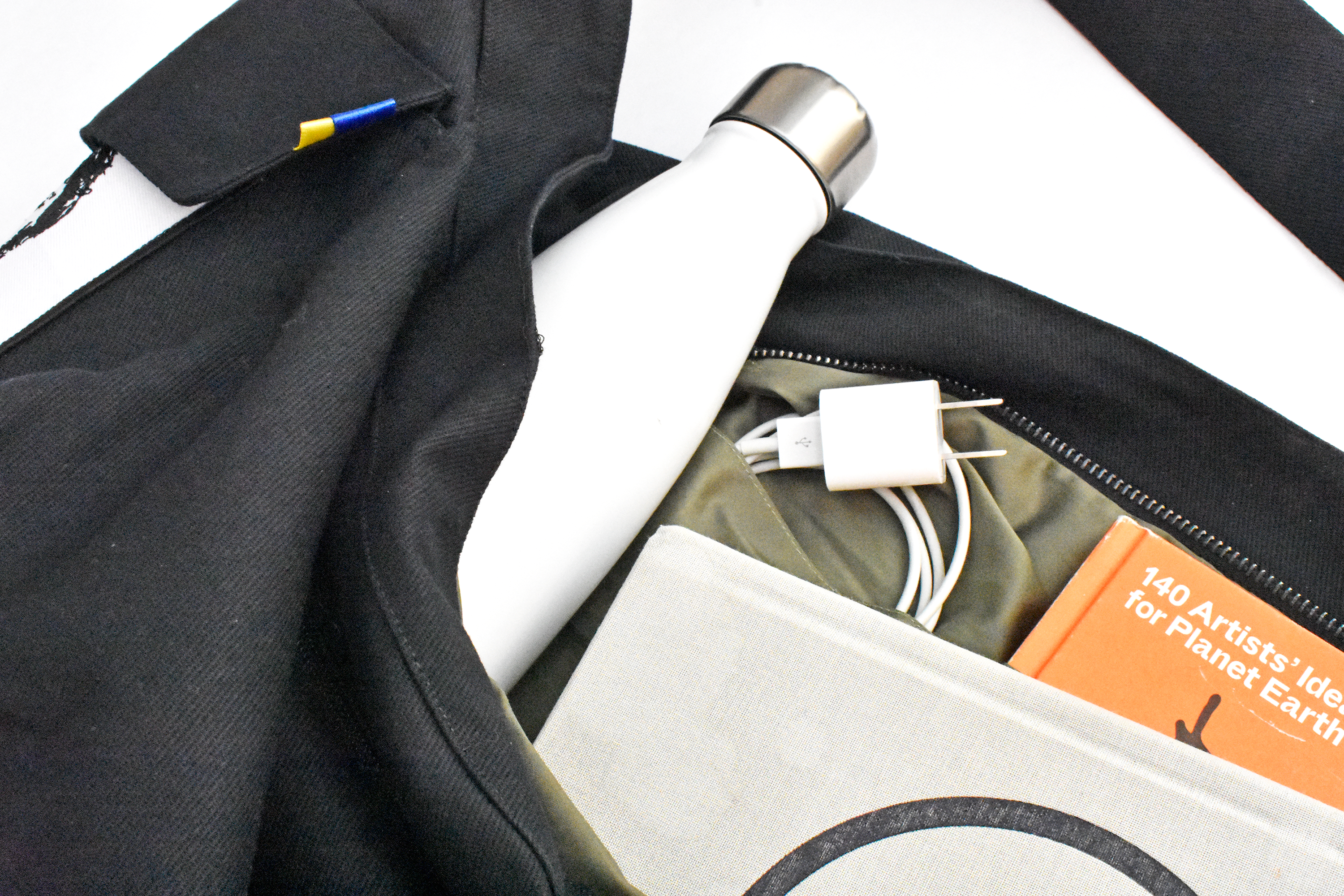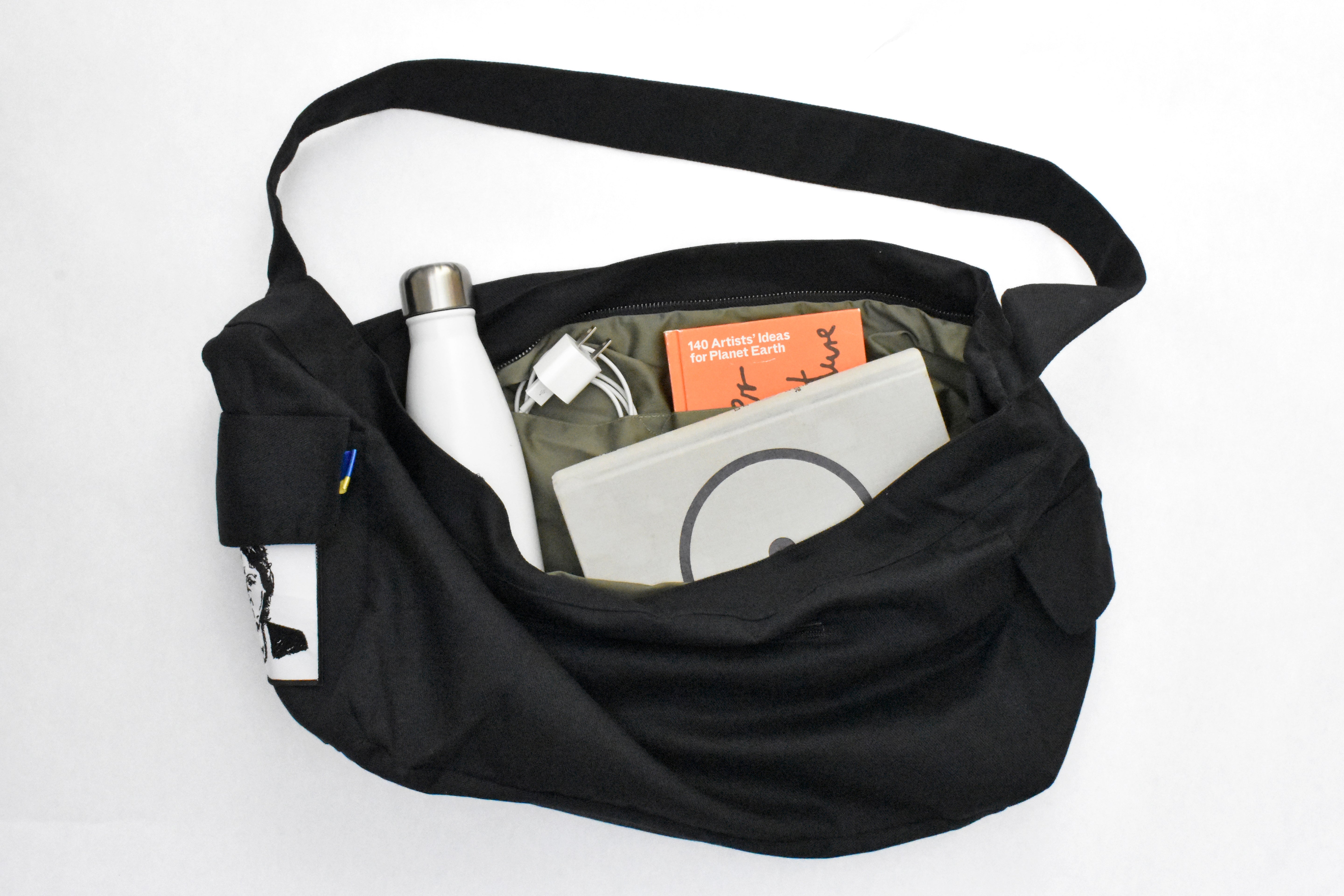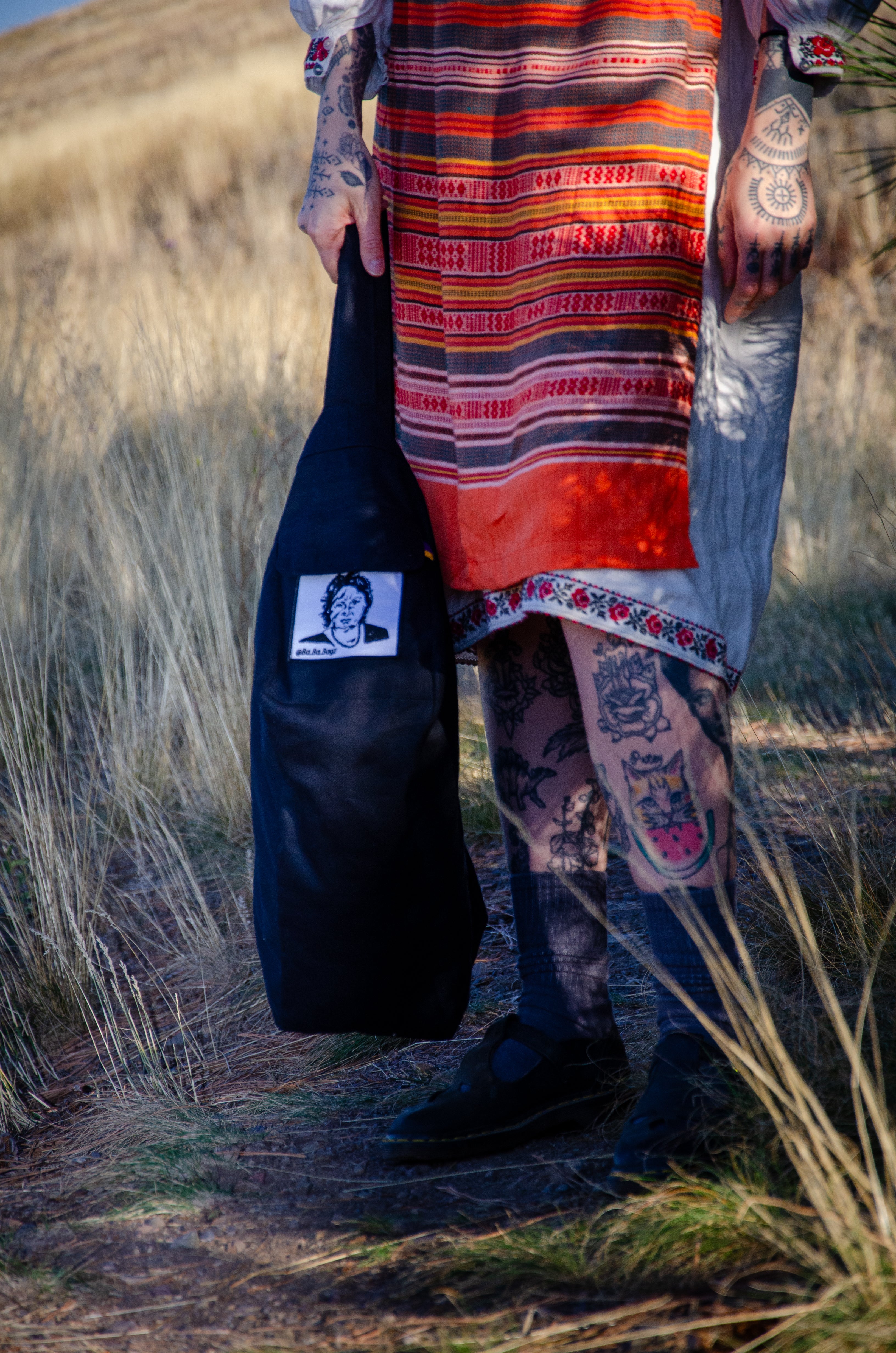 "Bigger is maybe better? Fit more stuff, extra pockets, loops to hang your keys, comfy, and most importantly... impeccable style! hand sewn by Babushka one by one, designed by Sasha. 50% of sales go to a family member fighting on the front lines of Ukraine." - Vera and Sasha