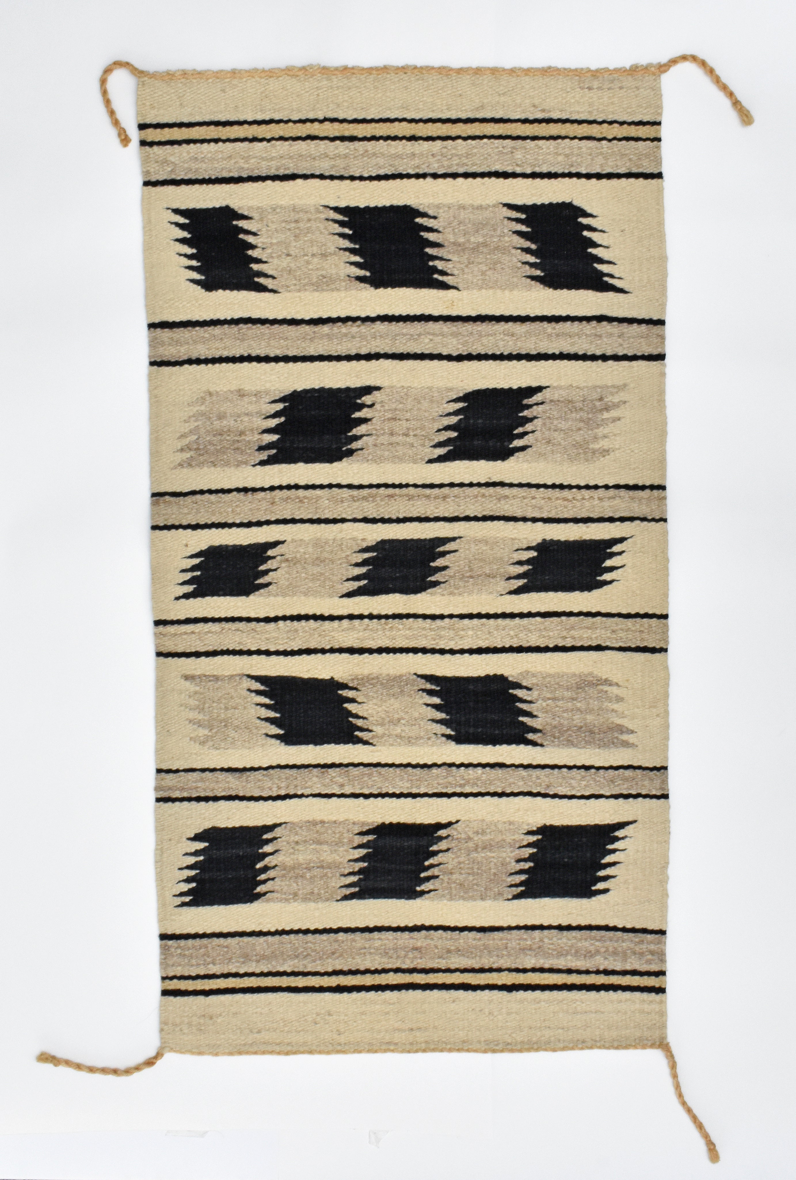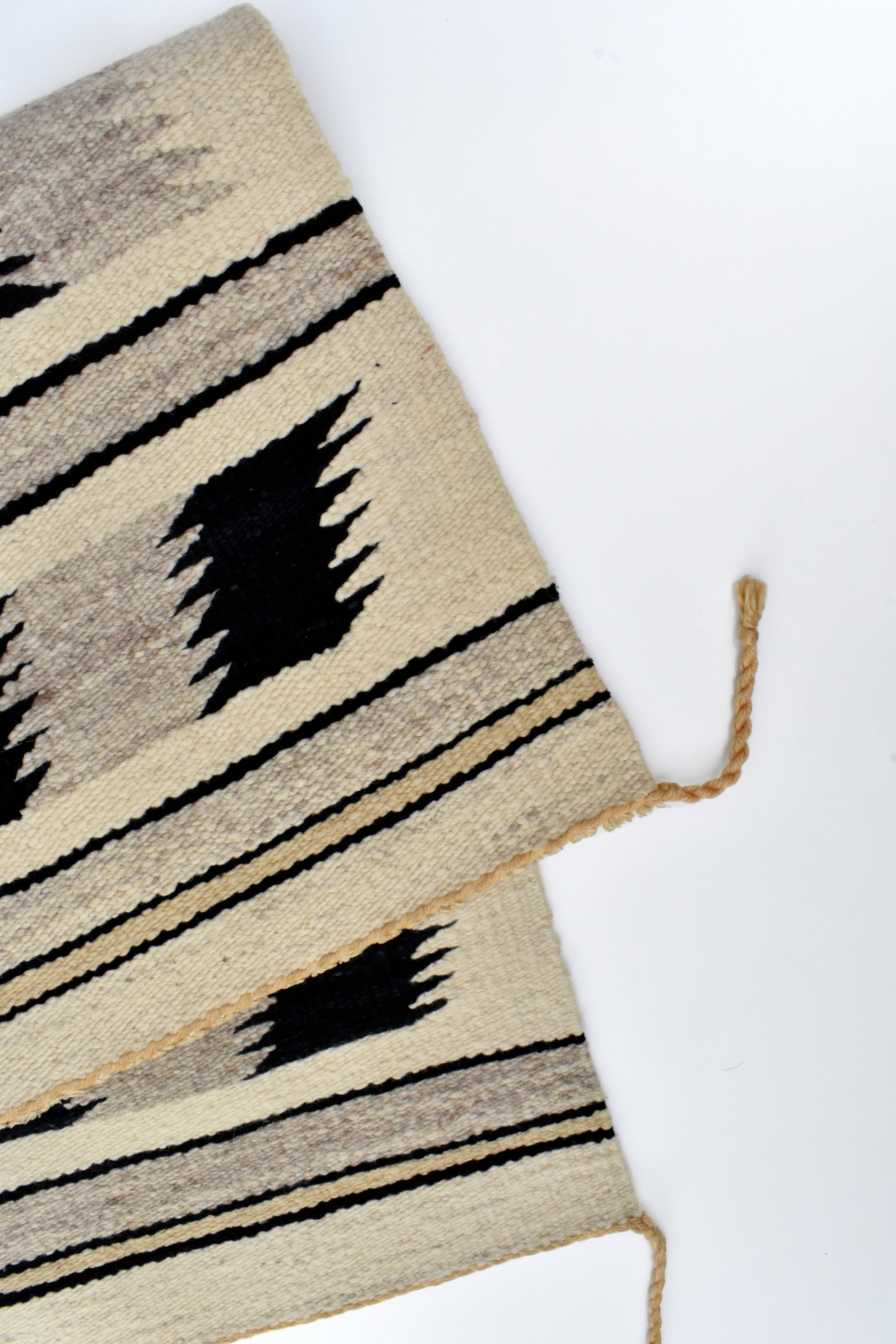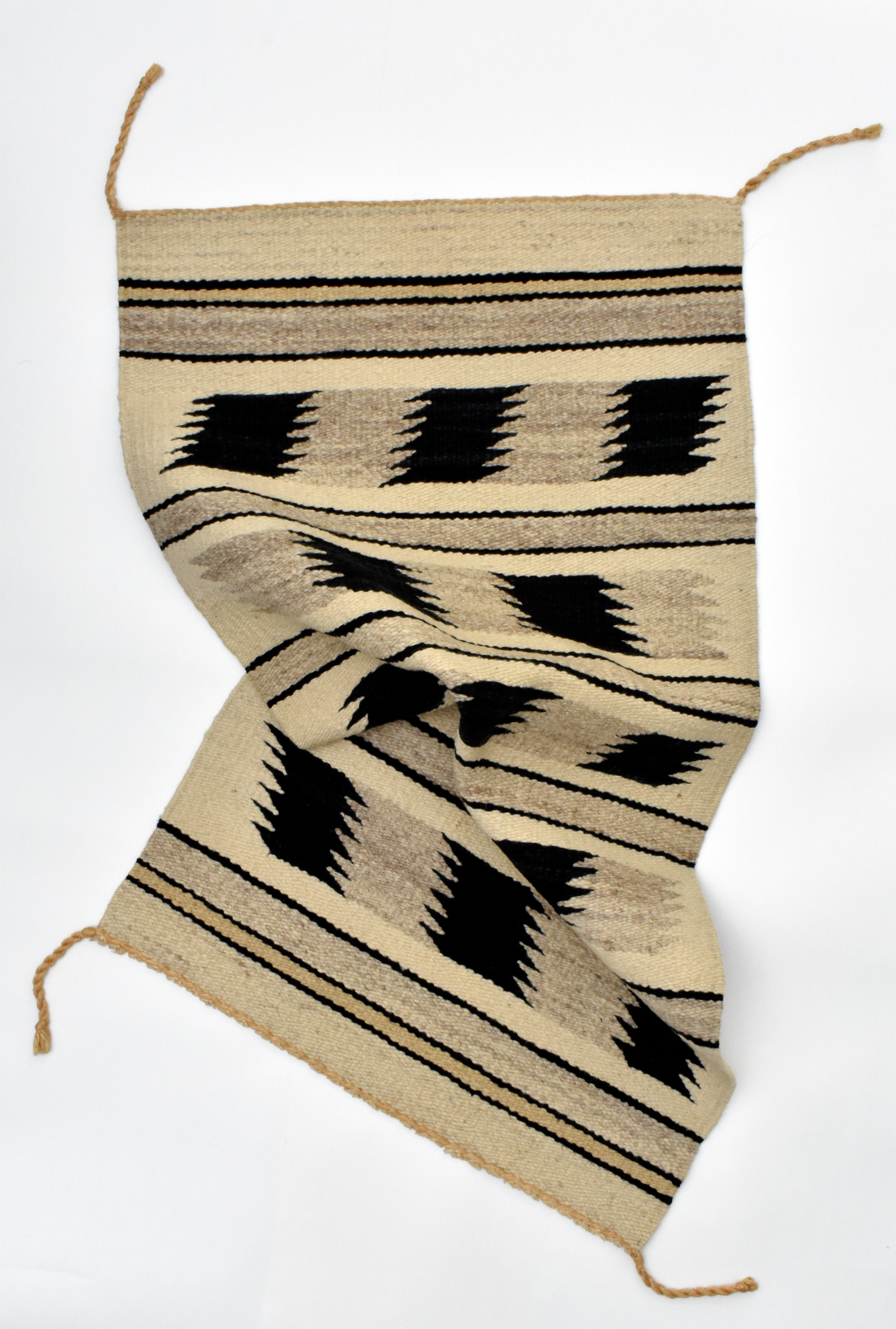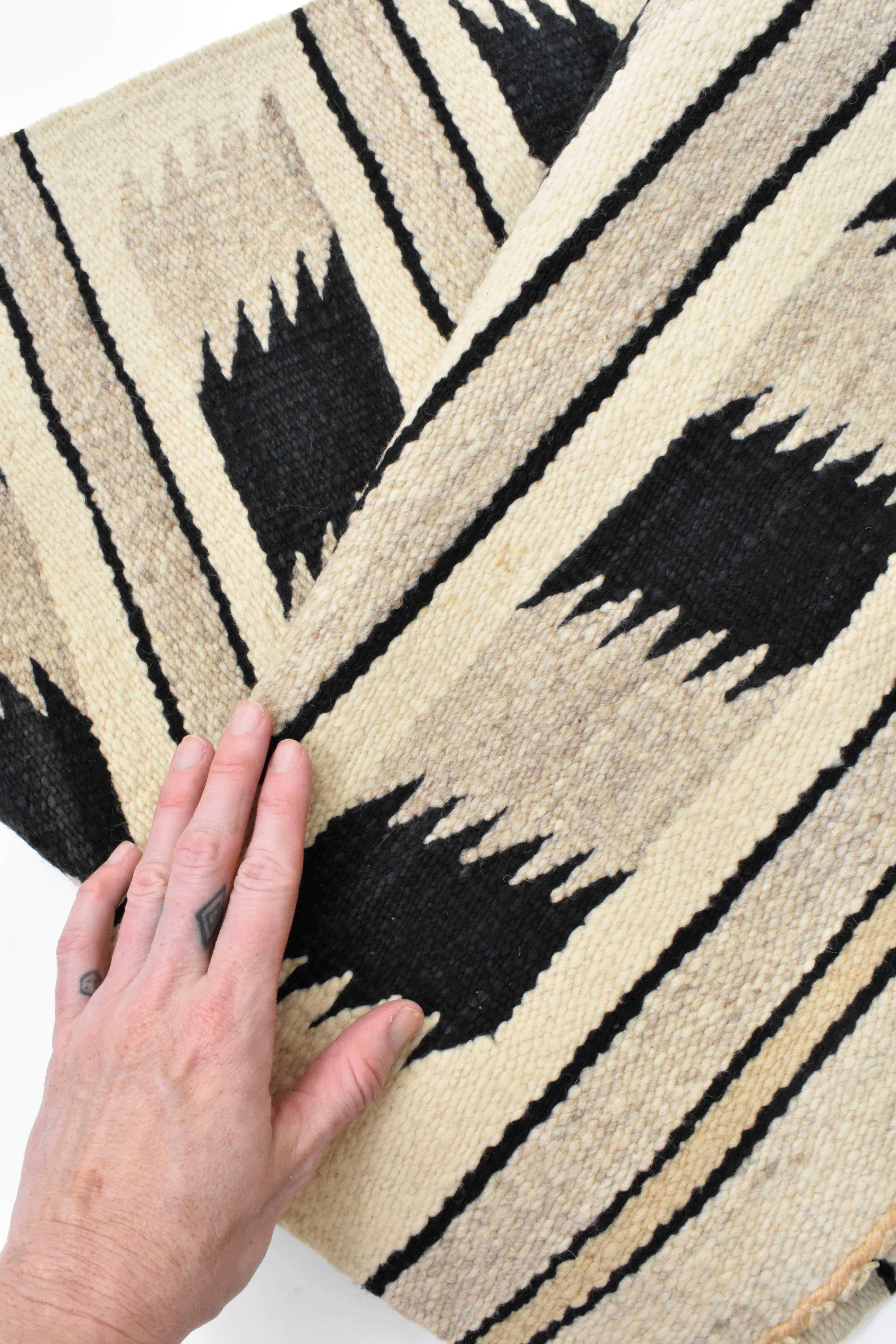 Measures 36'' x 19''. Hand woven, hand spun churro wool.